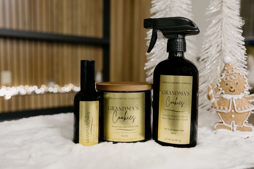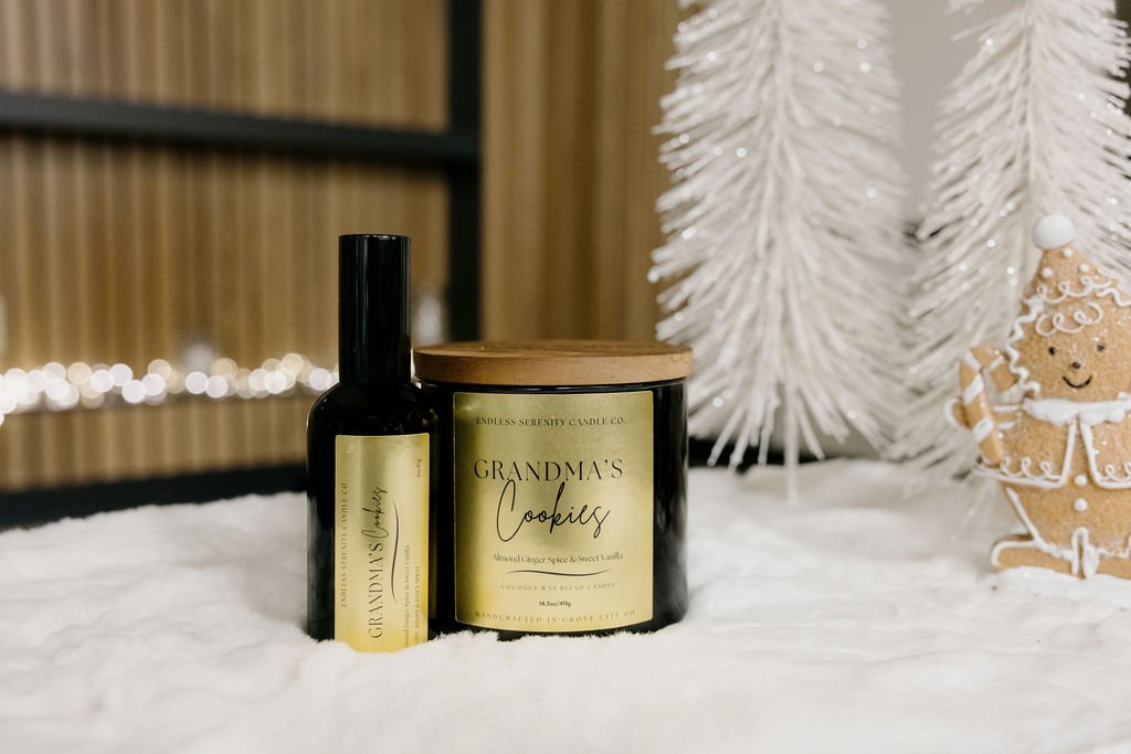Wrap your home in the comforting warmth of Grandma’s Cookies. This inviting spray blends ginger, sweet cinnamon, and rich nutmeg, capturing the aroma of freshly baked gingerbread straight from the oven. A few spritzes fill the air — or your linens — with that cozy, heartwarming scent that feels like home.